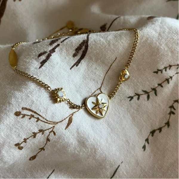 Goude armband met roze of witte hart, gemaakt van stainlesssteel!